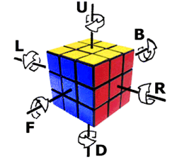 This tutorial relies on standard notation to describe each move. With the cube held in front of you, here is the notation for the six faces: