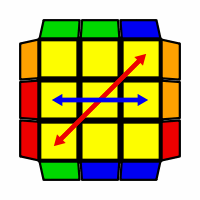 | algorithm | (z) D (R’ U) (R2 D’ R D U’) (R’ U) (R2 D’ R U’ R) (z’) | (z) 2x[ (D’ R U’ R2′) D (R’ U) ] R (z’) |
