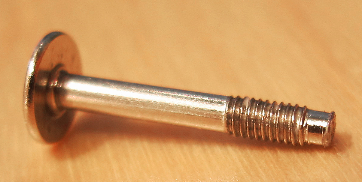 Even with macro photography, it’s hard to tell, but the tip of the screw is badly unfinished: (1) it has a rim of sharp flashing nearly as thick as the threads and (2) it has a sort of angled divot/dent on one side. Together, I think those flaws caused the mis-threading. Kind of frustrating that such a small QC issue could ruin the whole kit.